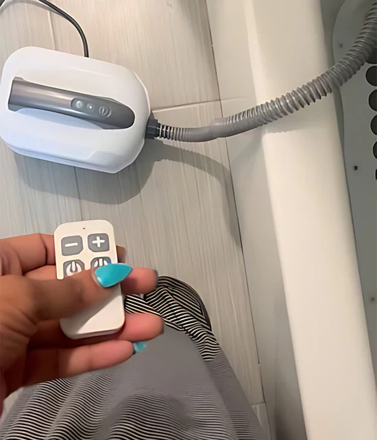 Yes! Just lay it flat in your tub, secure it with suction cups, connect the air hose to the pump, and use the remote to adjust your settings.